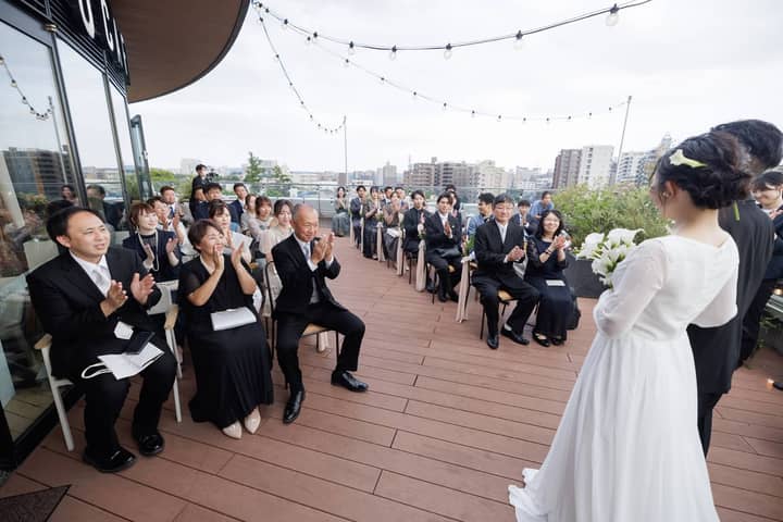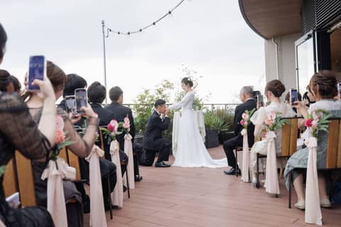 雨が降らなかったので、挙式は開放感たっぷりのテラスで行うことができました。